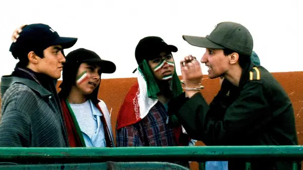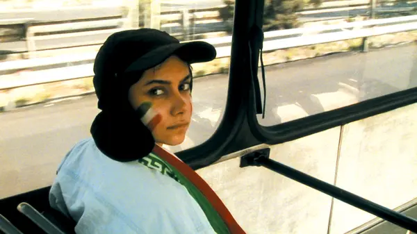 1:0, in favour of Iran! But the goal can’t be seen, because the camera is stuck outside the stadium, “offside”, along with a group of girls. In Iran, only men are allowed inside – so the girls dress up as boys. Though they get caught, they refuse to be intimidated. In what becomes a hilarious battle of the sexes, the cheeky, determined girls from the city argue about the ban’s absurdity with the young soldiers from the countryside who have been charged with enforcing it. Comedy prevails, but beneath the light-hearted surface, injustice simmers. Inspired by an experience he shared with his daughter, football fan Panahi shot much of Offside outside a roaring stadium during a real game.